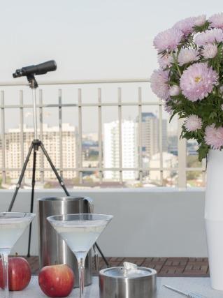 Просторный видовой объект для тех, кто ценит приватность, панорамное остекление и редкие форматы в центре города. Площадь квартиры — 140 м², дополнительно терраса 70 м² с оборудованной зоной кухни и впечатляющим видом на город.