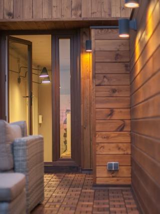 • гостевая зона — кухня-гостиная и санузел,