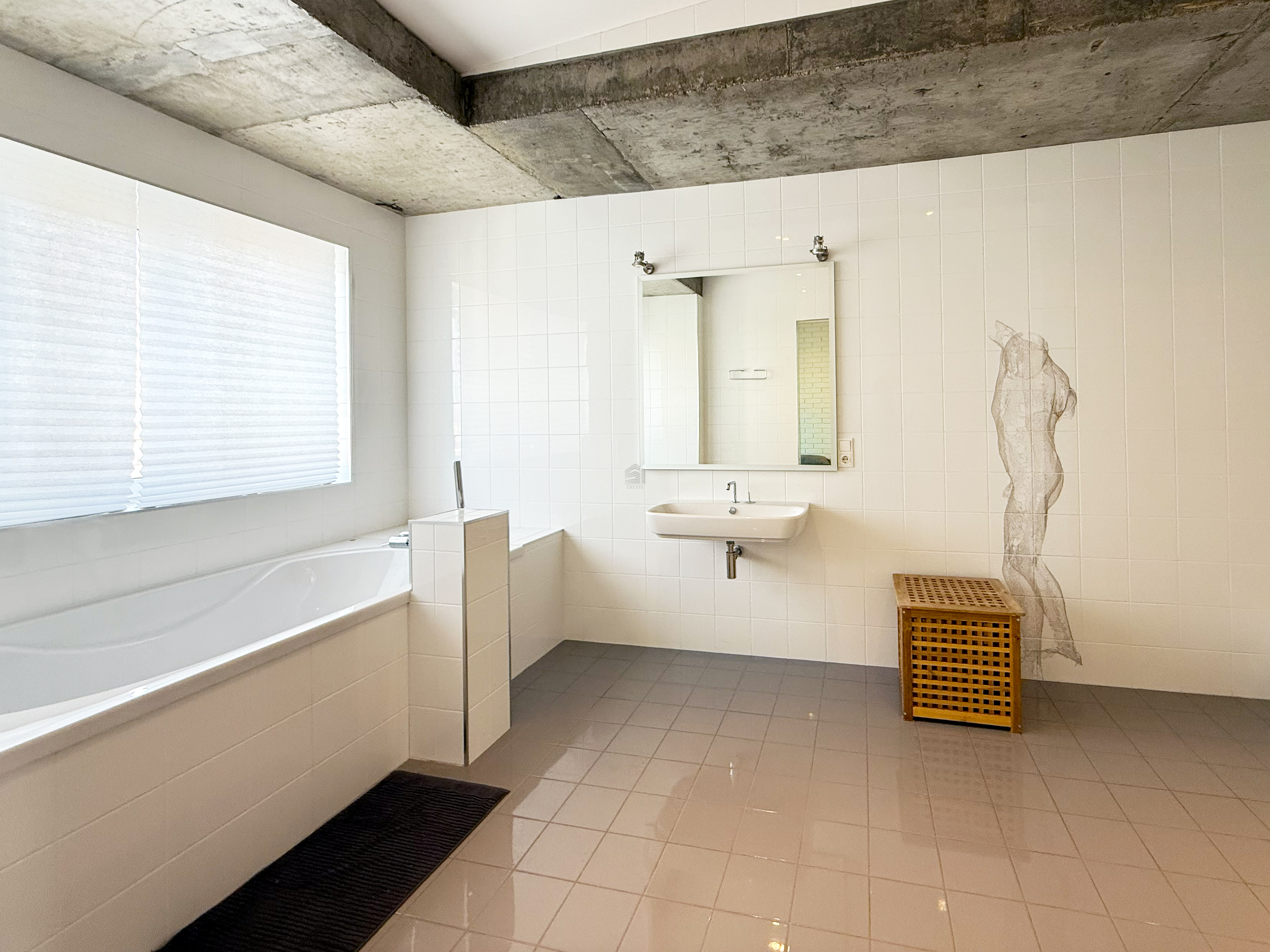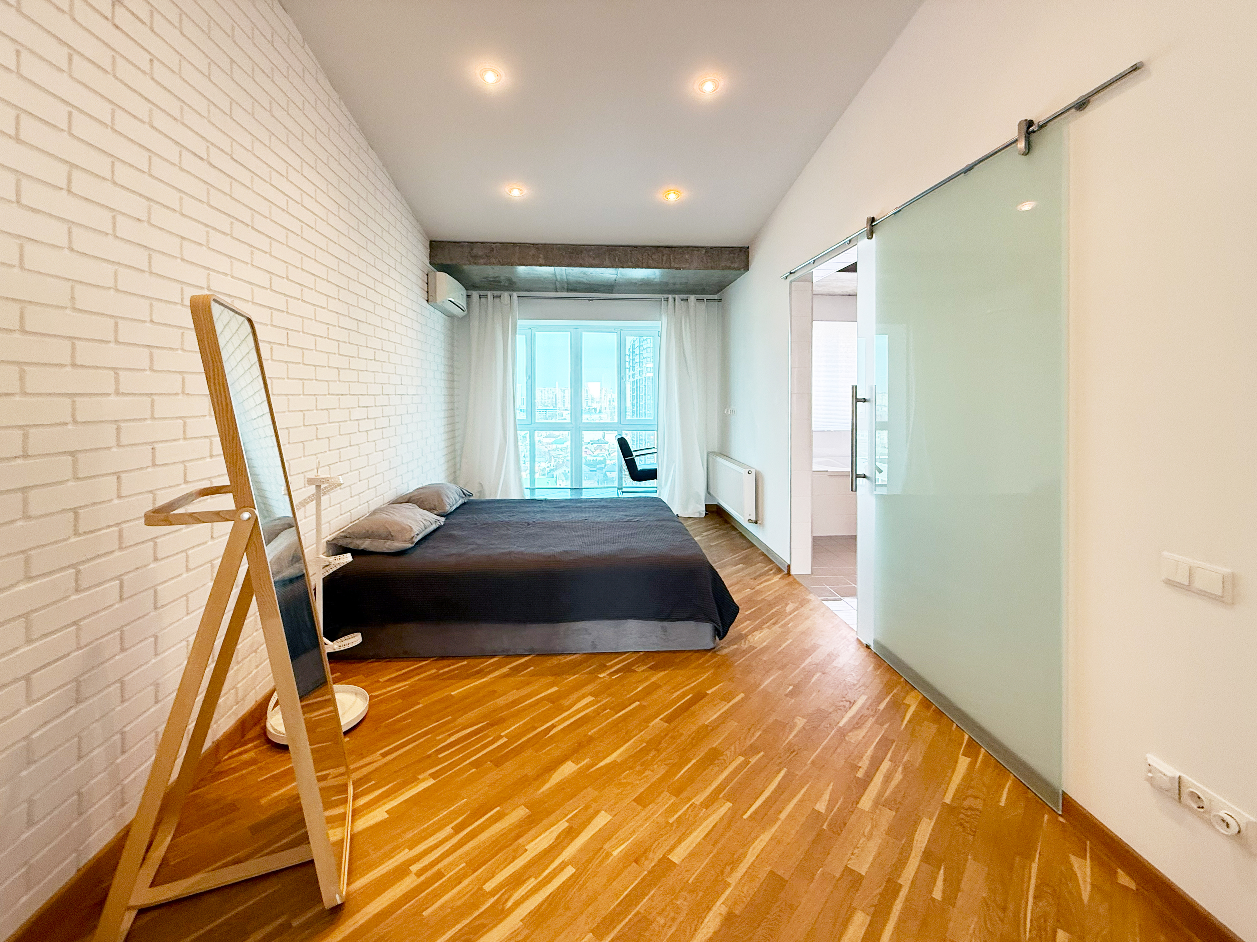 • приватная зона — спальня, кабинет, гардеробная и большая ванная комната с окном.