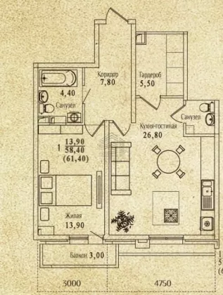 Продается однокомнатная квартира, 61.4 кв.м., 3/25 эт