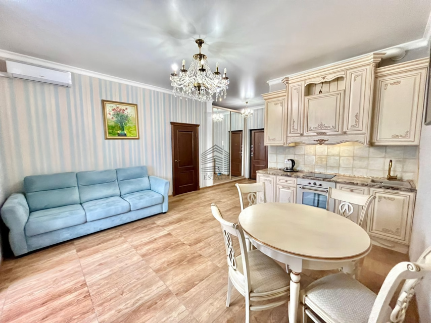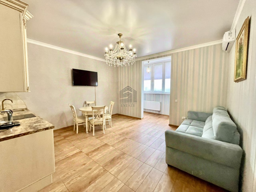Квартира приобреталась для семьи, никто не проживал. Выполнен современный дизайнерский ремонт: кухня-гостиная, просторная спальня, санузел с душевой кабиной. Вся мебель и техника остаются. Панорамные окна обеспечивают широкий городской вид. Дом монолитный, с консьерж-службой, охраняемой территорией и автостоянкой. ЖК «Адмирал» расположен у реки Кубань: в пешей доступности парк, спортивный клуб, кафе, рестораны, магазины и остановки общественного транспорта.