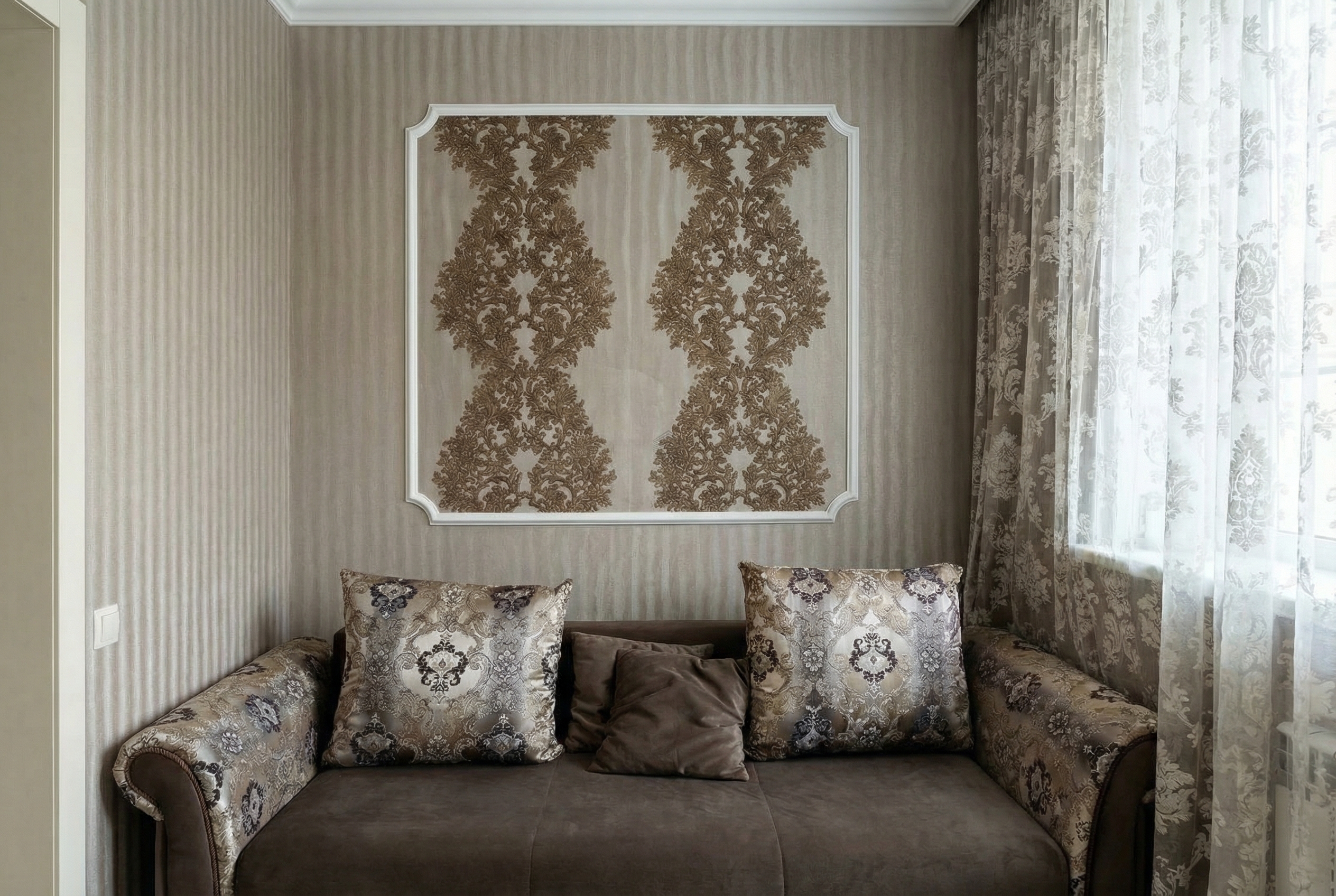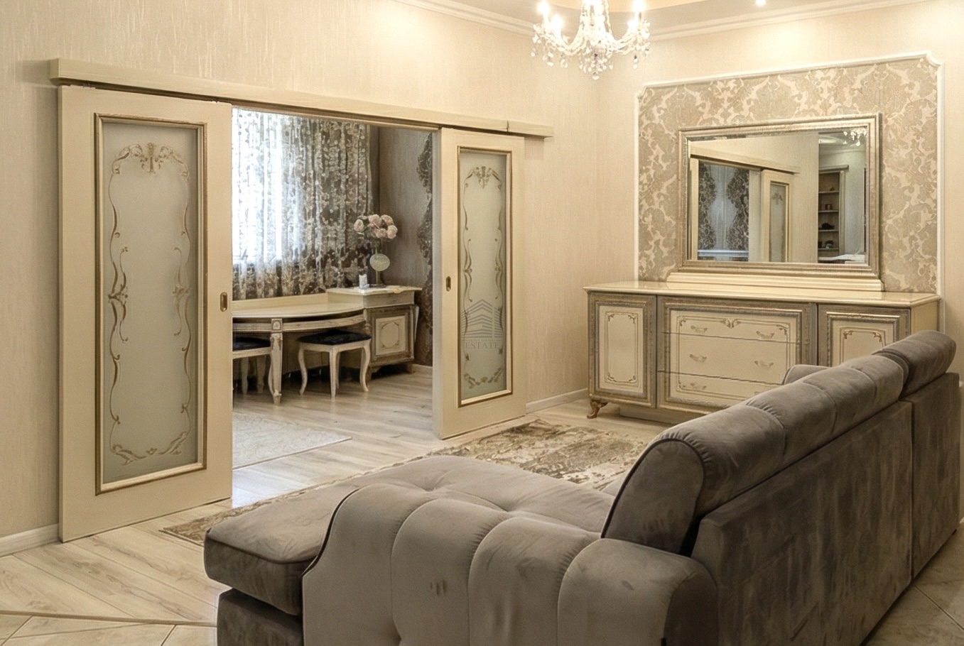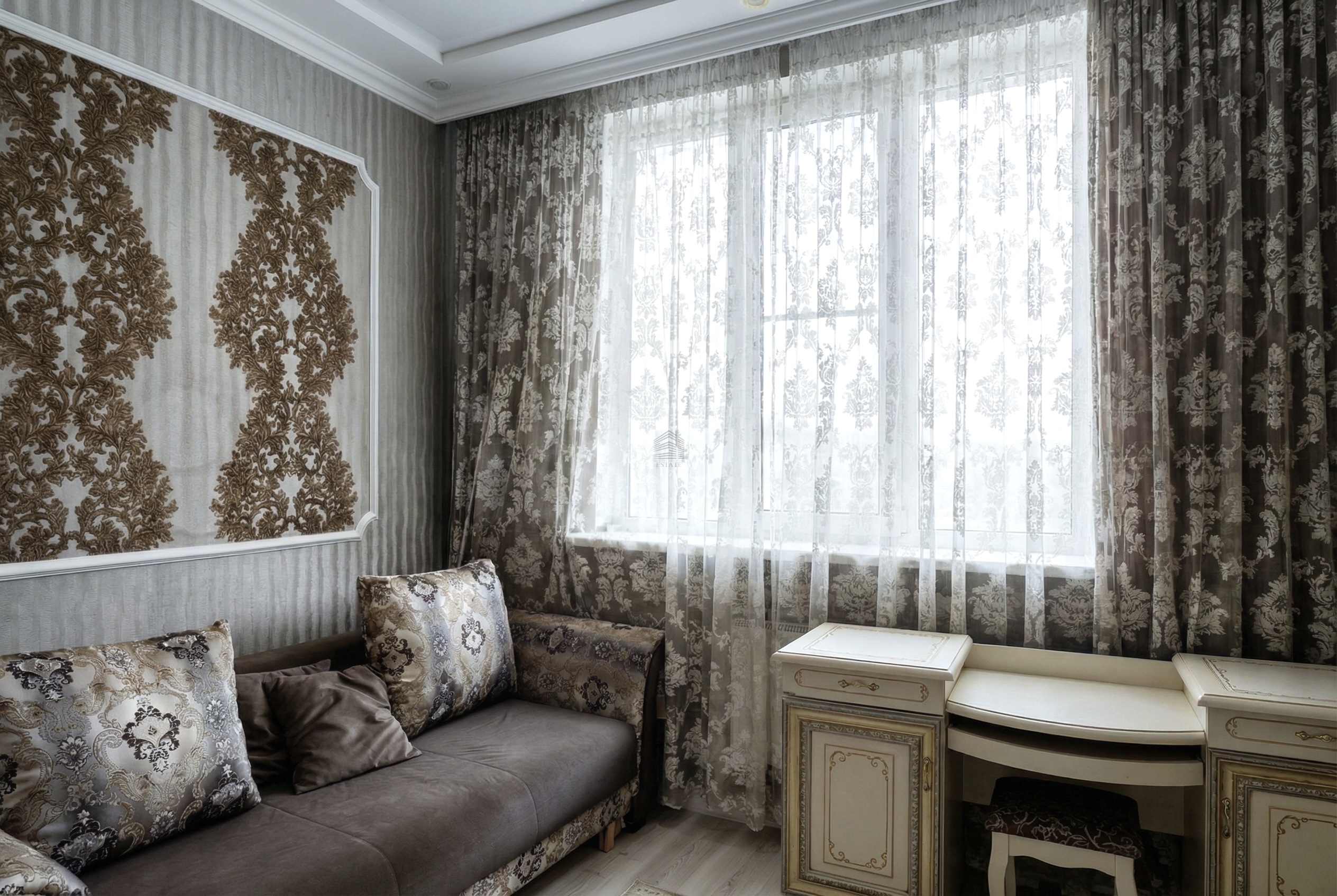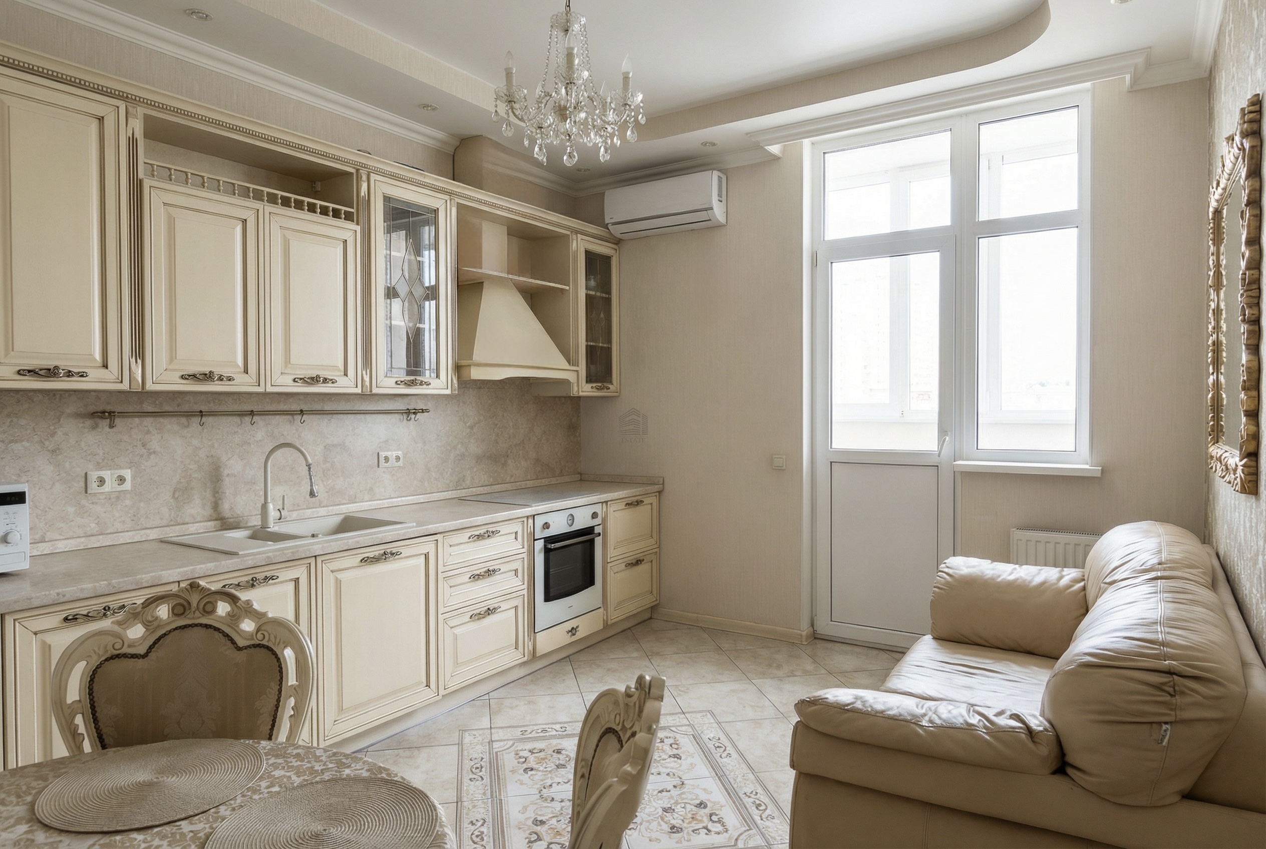 9 этаж, высота потолков — 3 метра, за счёт чего квартира ощущается просторной и светлой.