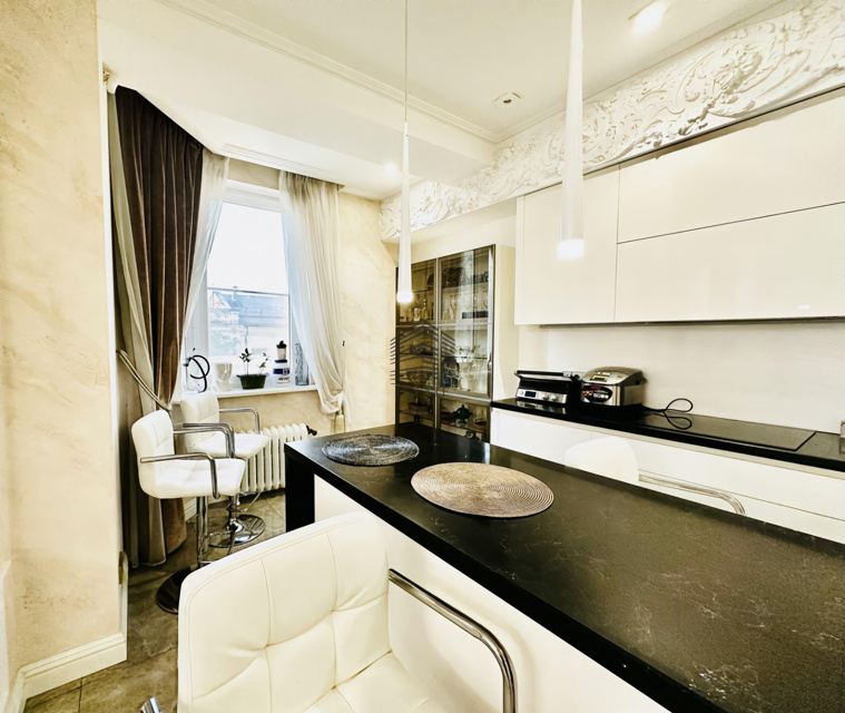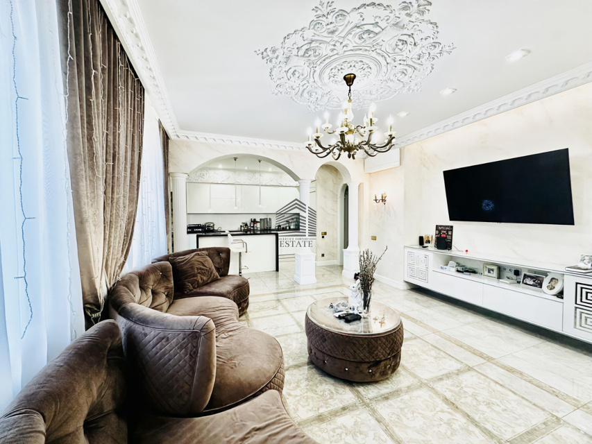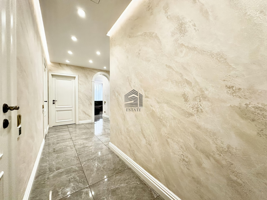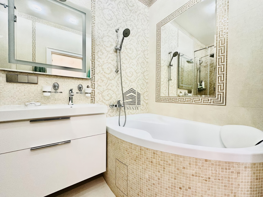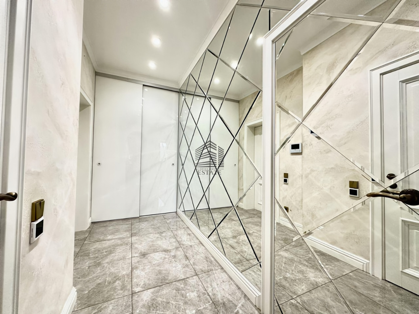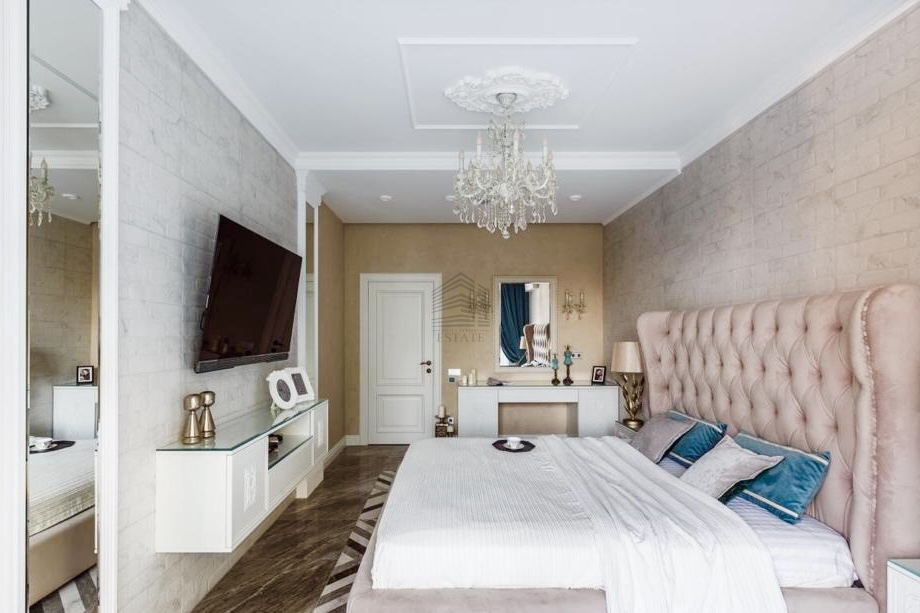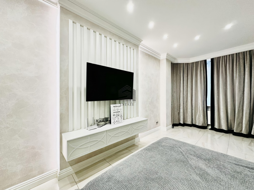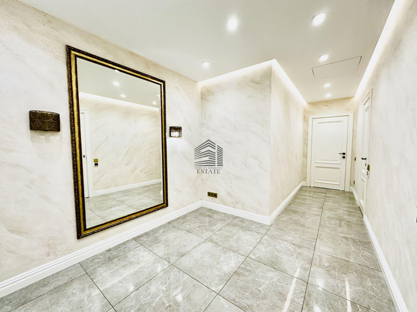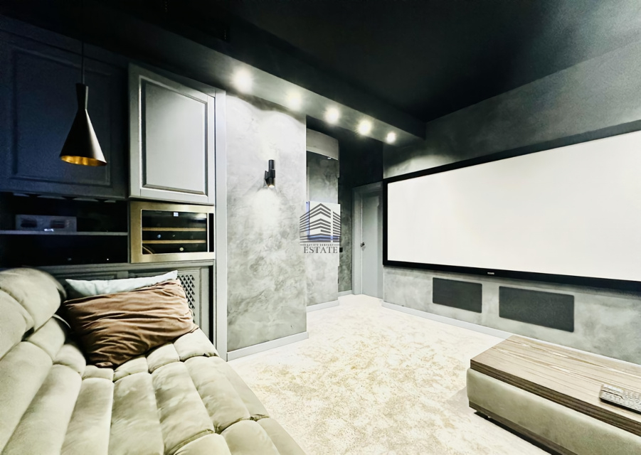 Планировка на две стороны света, просторная кухня-гостиная, две изолированные спальни, два санузла, большая гардеробная. Особая изюминка — домашний кинотеатр и караоке-зона с профессиональной акустикой, проектором и шумоизоляцией. Квартира полностью готова к проживанию, выполнен дорогой ремонт с использованием качественных материалов.