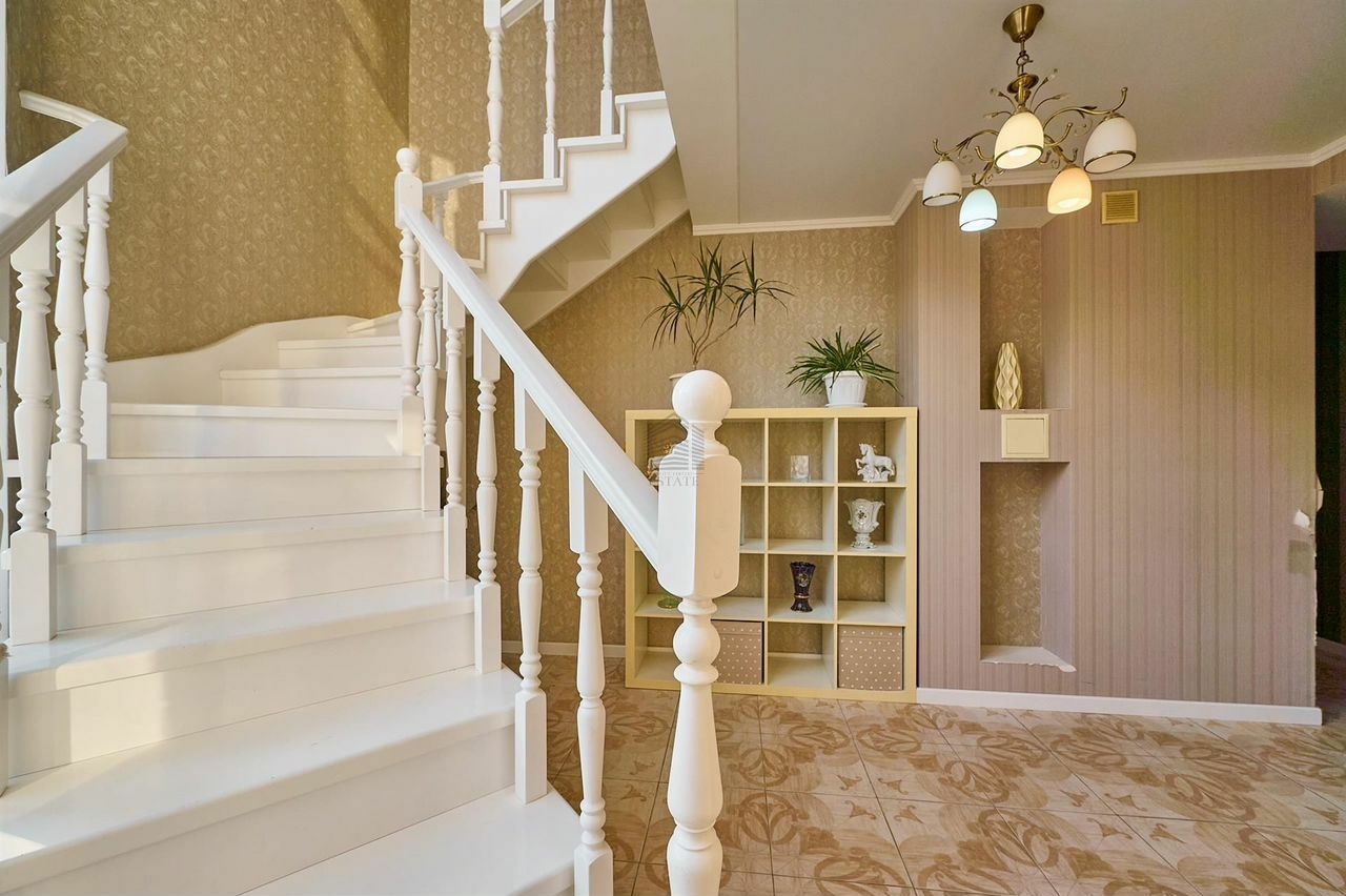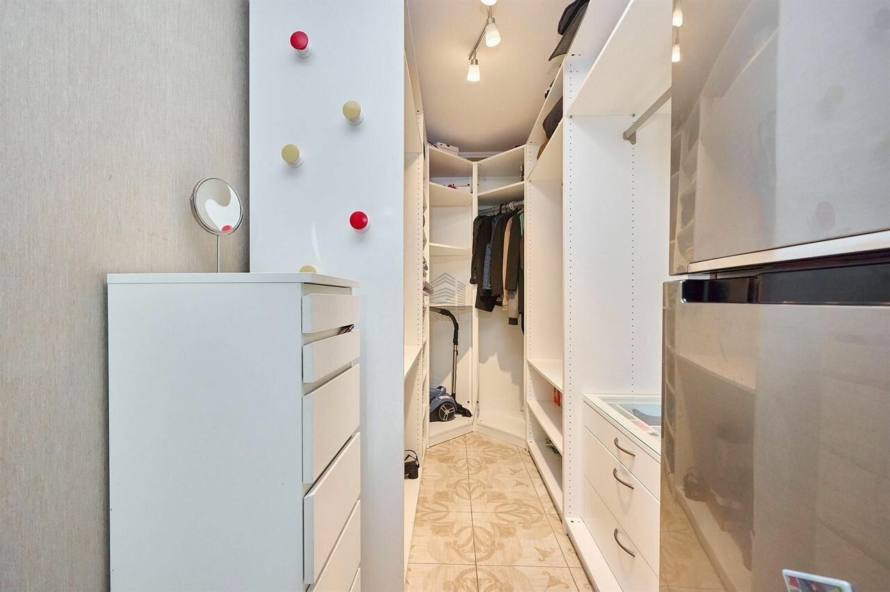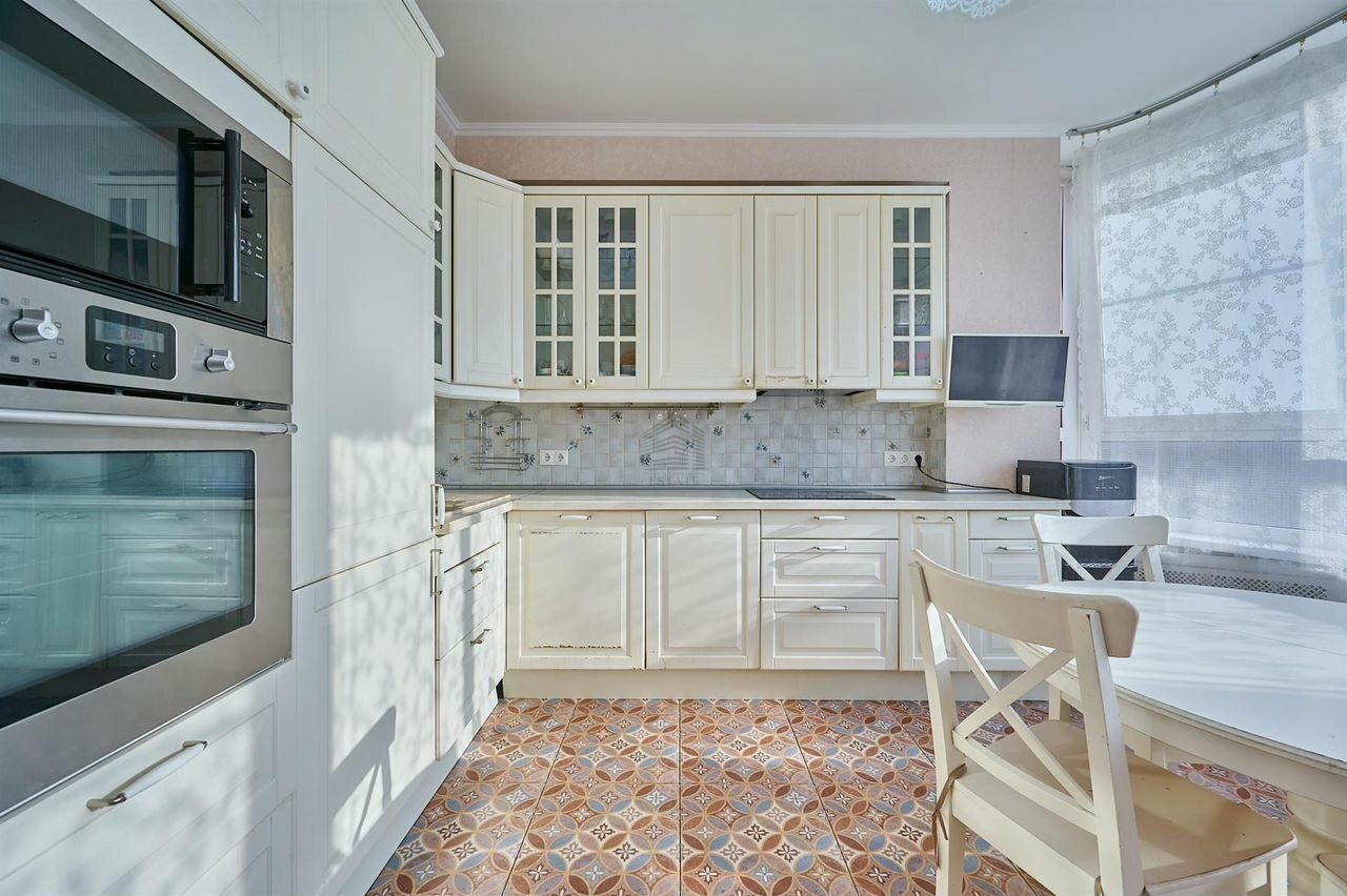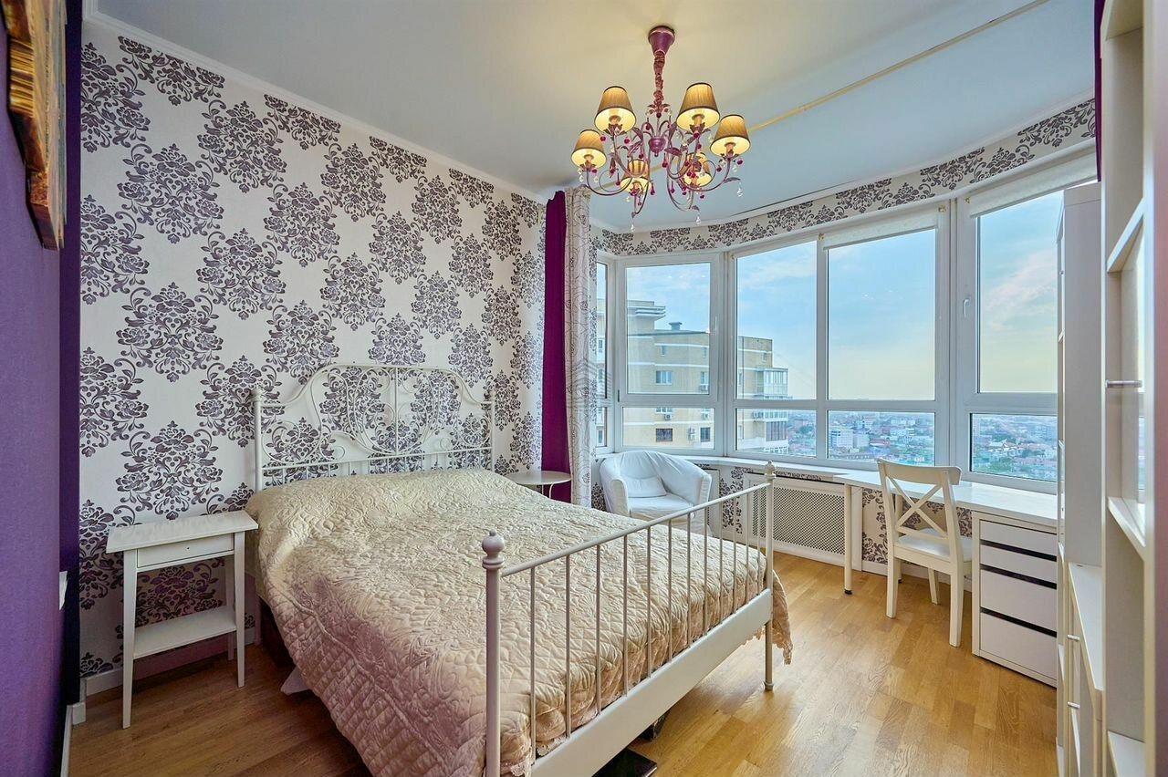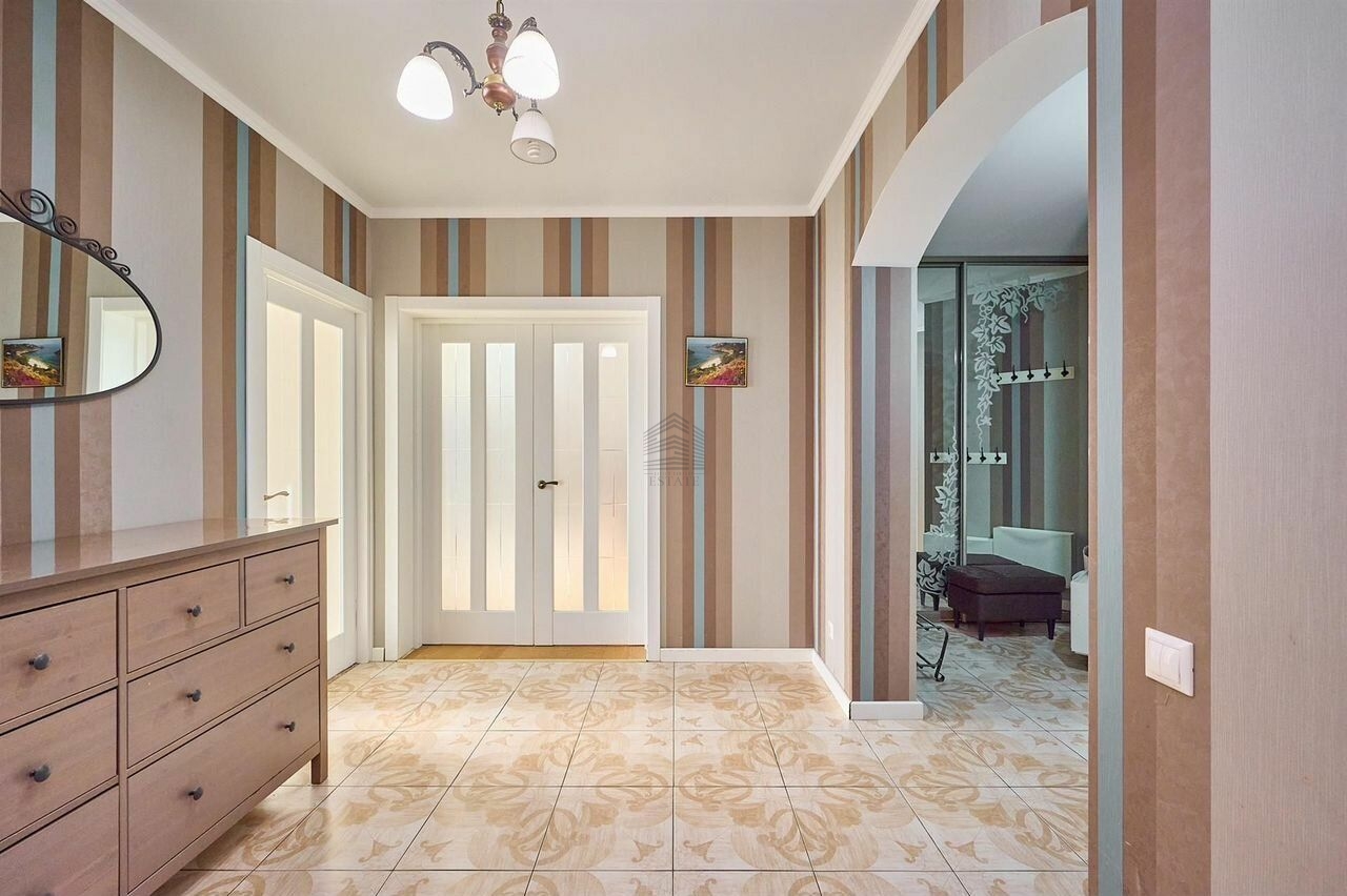 Пентхаус общей площадью 296,7 м² (жилой 165,9 м² + терраса 122 м²) расположен на 23–24 этажах 24-этажного кирпичного дома. В квартире 4 изолированные комнаты, кухня-гостиная, гардеробная с прачечной, 3 санузла, 2 застеклённых балкона и просторная терраса. Мебель на заказ из Германии, кухня с техникой Bosch, изысканные кожаные элементы в спальне и гостиной. Высокие потолки и панорамные окна создают ощущение света и простора.