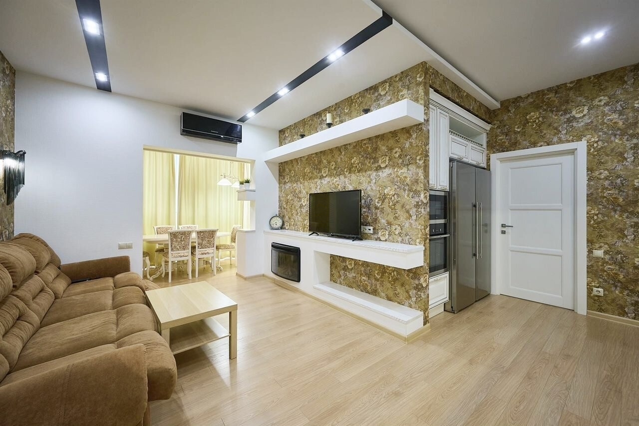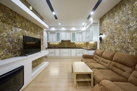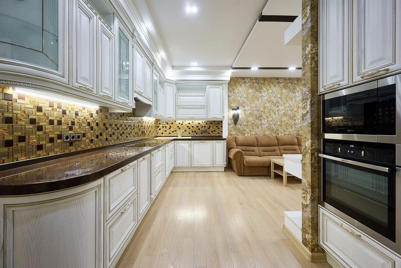 Квартира продаётся с мебелью и техникой — можно заехать сразу, без дополнительных вложений. Кухня укомплектована (встроенная техника, посудомоечная машина и пр.), установлен камин.