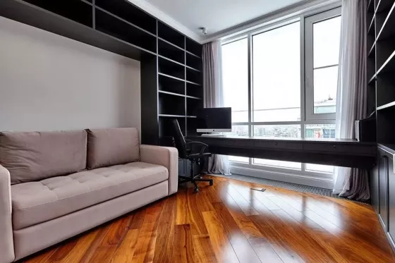 - Современная кухня и кабинет, идеально подходящий для работы.