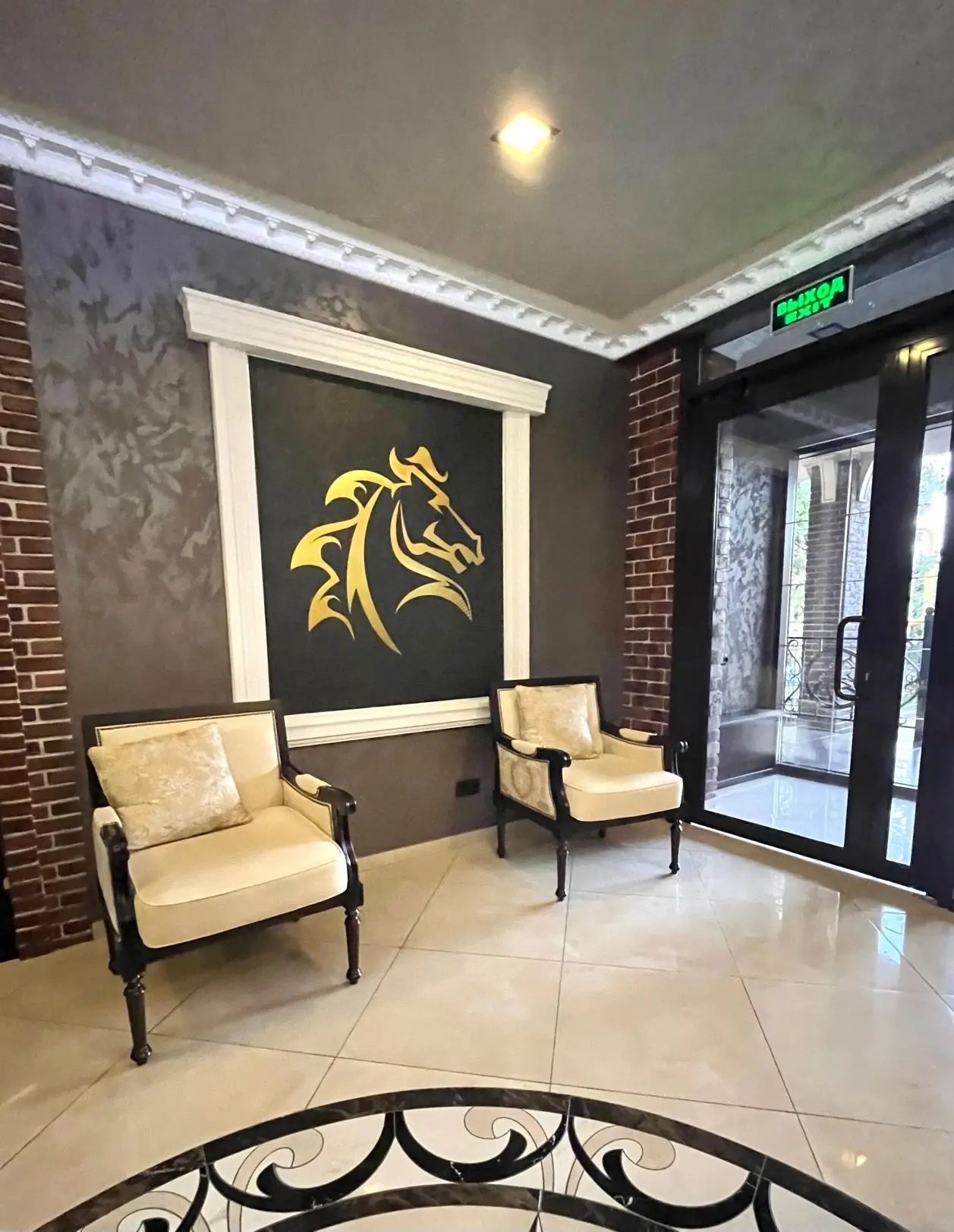 Подъезд c дизайнерским ремонтом отельного типа с круглосуточным консьерж-сервисом. Гостевая-переговорная комната на первом этаже.