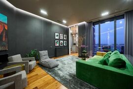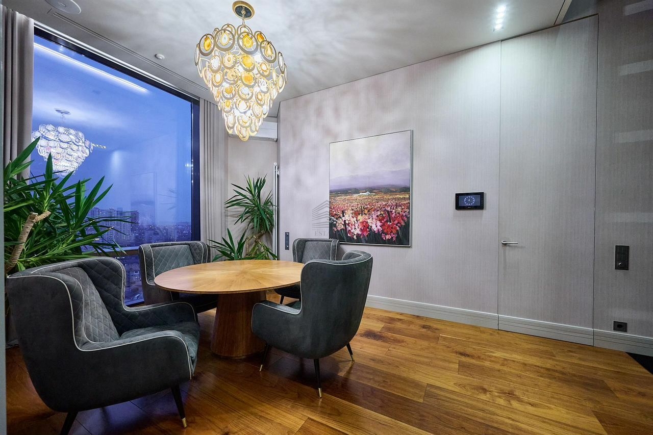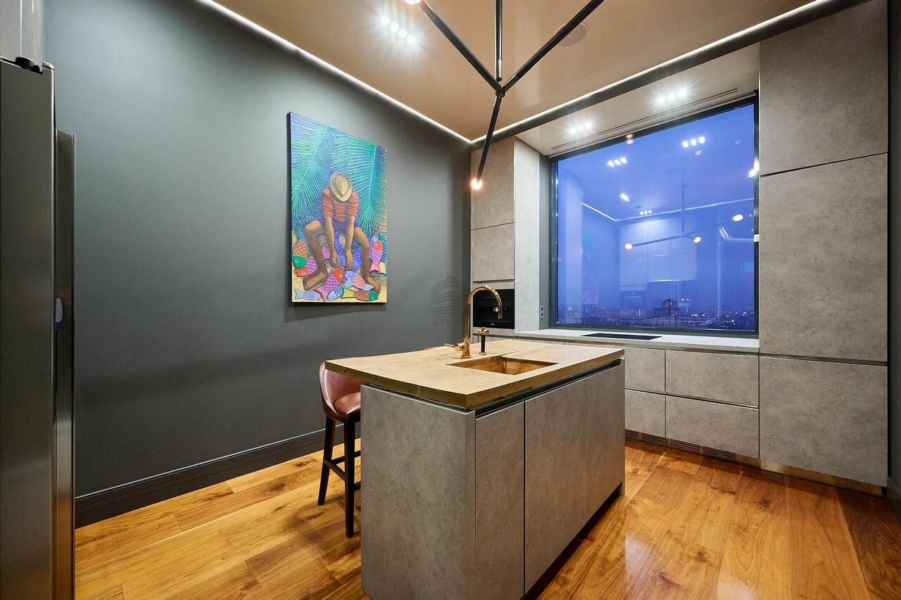 Редкость на рынке — трёхуровневый пентхаус с собственной террасой и садом. В квартире реализован уникальный дизайнерский ремонт премиум-класса, техника Miele на двух кухнях, итальянская мебель и двери Lualdi, душевые и санузлы Duravit, встроенная музыка Bose, натуральные камни и дерево. Эксклюзивная кровля более 150 м² и гриль-зона делают этот пентхаус настоящей жемчужиной города.