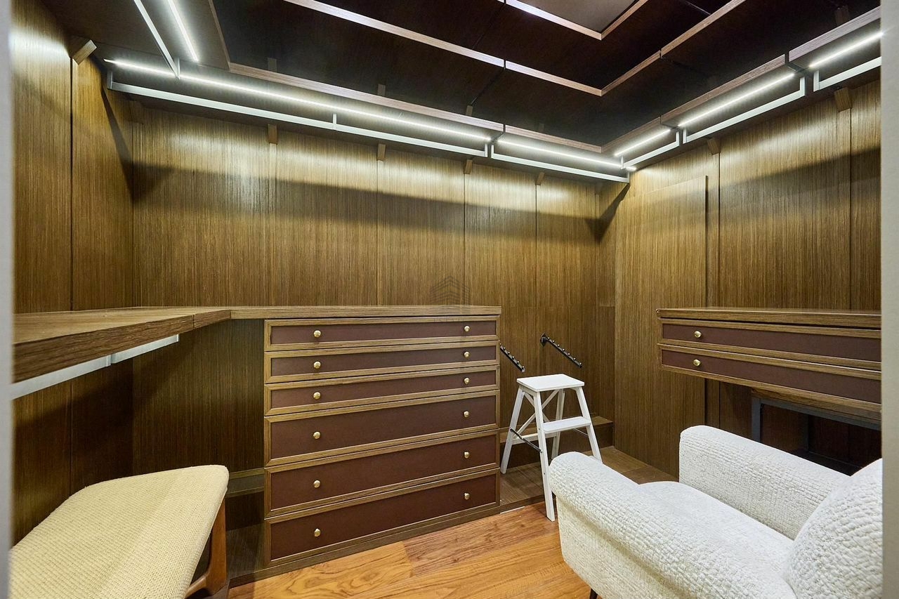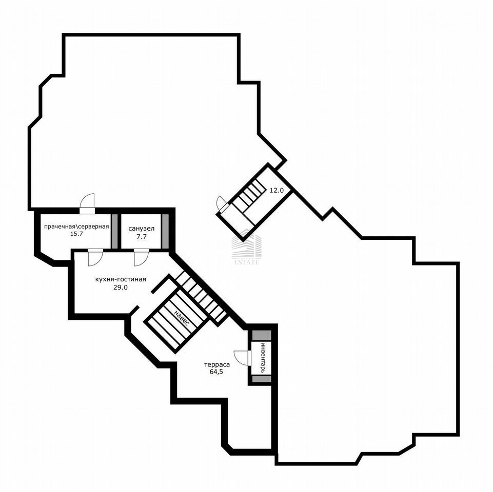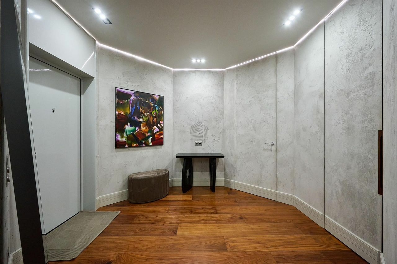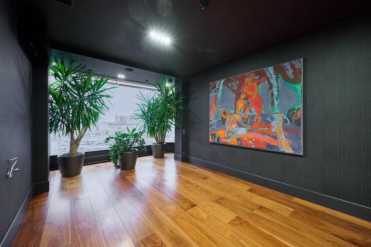 Общая площадь квартиры с террасой и эксплуатируемой кровлей более 329,3 м². Планировка позволяет при желании добавить изолированные комнаты. Есть прачечная, просторные залы, кабинет, зал для йоги. Приточно-вытяжная вентиляция поддерживает чистый воздух и комфортную температуру в любое время года. Терраса с садом ухаживается профессиональными садовниками, проектор и монитор создают кинотеатр под открытым небом.