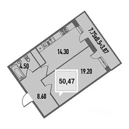 Площадь: 50,5 кв. м