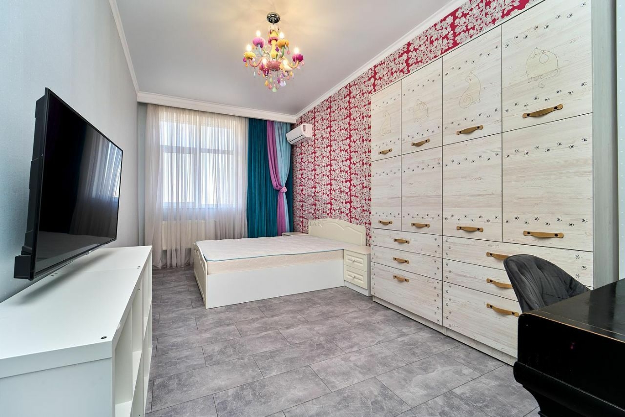 Площадь квартиры — 134,4 м², расположена на 7 этаже 16-этажного монолитно-кирпичного дома премиум-класса. Просторная кухня-гостиная 50 м², жилая зона — 70 м², продуманная планировка обеспечивает максимум света и уюта. Выполнен дизайнерский ремонт, вся мебель и техника остаются новому владельцу. Есть балкон, отдельный санузел и полноценное ощущение простора.