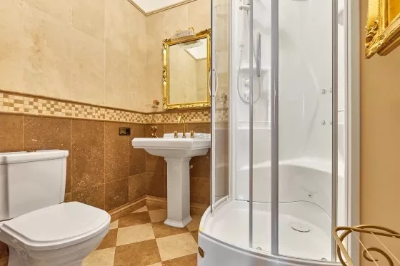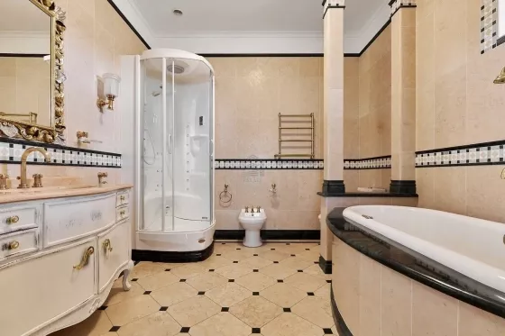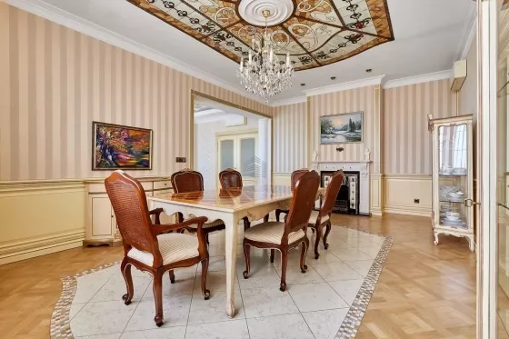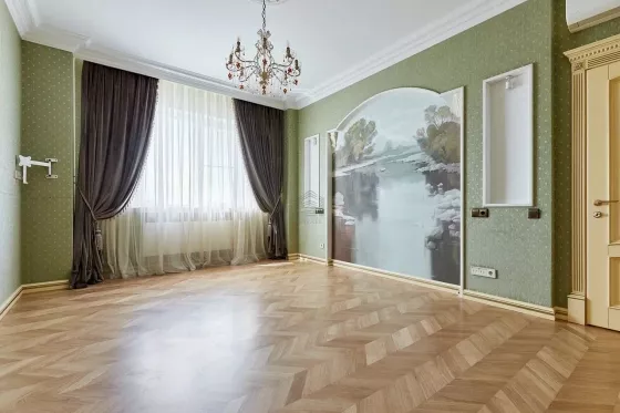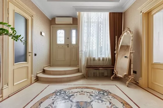➤ Дизайнерский ремонт в классическом стиле — натуральный паркет, мрамор, фрески, массивные двери.