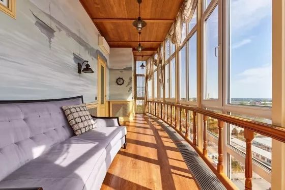➤ Просторная планировка на три стороны света с террасой 57 м². Терраса занимает половину этажа.