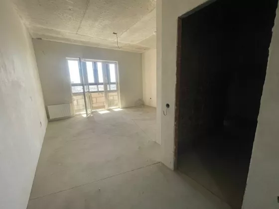 Квартира располежена на 18 этаже. Квартира-студия $= 27 м2, с такой площадью вполне комфортно зонировать данную квартиру, а лоджия с панорамным остеклением - может служить кабинетом или лаундж зоной для приятного времяприпровождения-с видом на город.