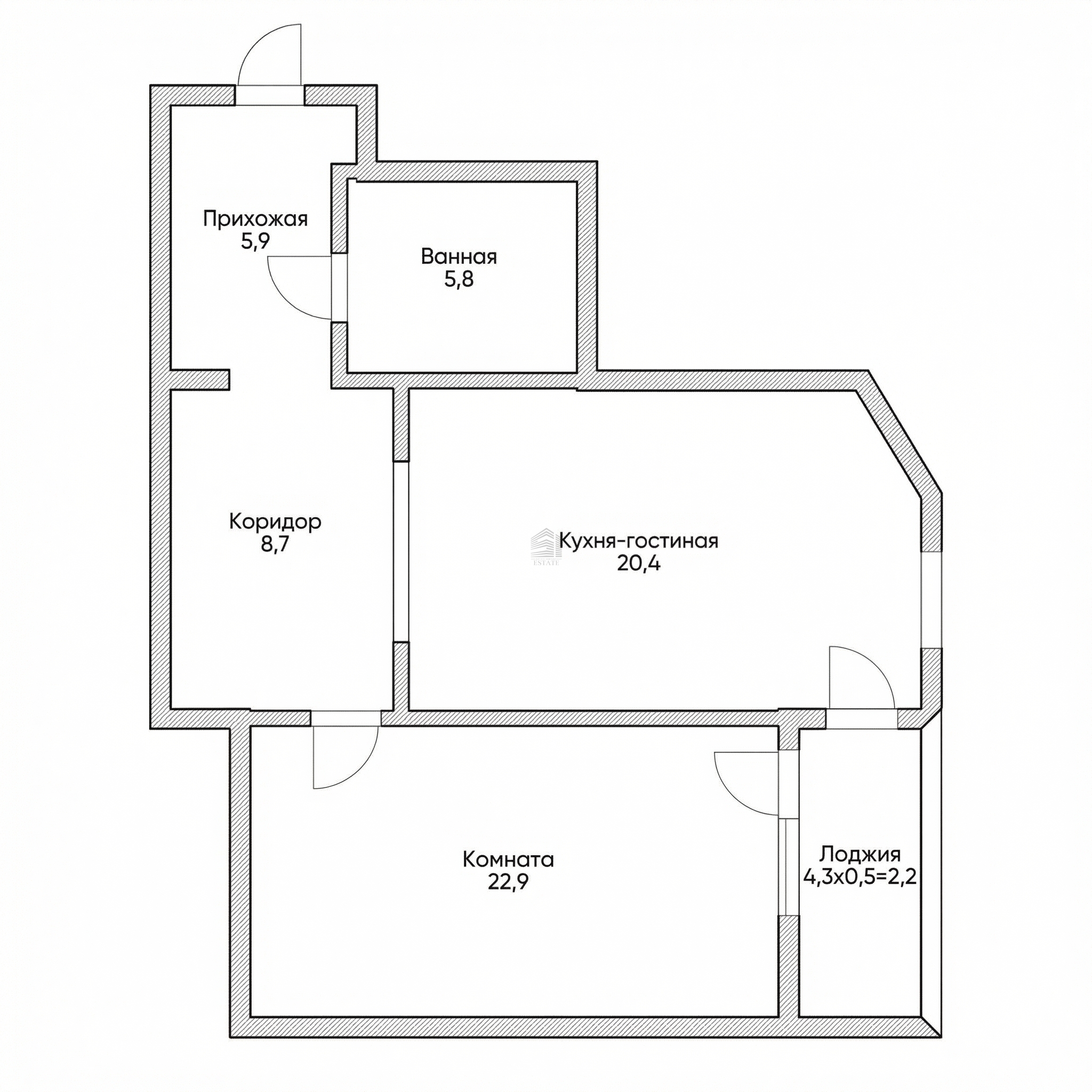 Планировка: кухня-гостиная, спальня и дополнительная комната под гардеробную / кабинет.