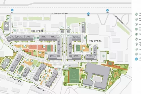 •Во дворе — детский сад, школа, спортивные площадки, зоны отдыха