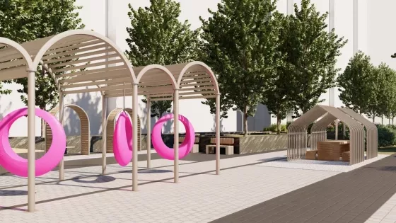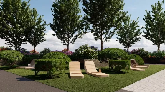 ➣ Благоустроенная зеленая территория с видеонаблюдением, зонами отдыха и детской площадкой