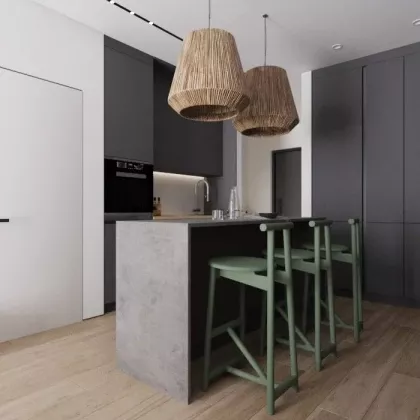 Современный дизайн, продуманная планировка, встроенная мебель, оборудование современной техникой.